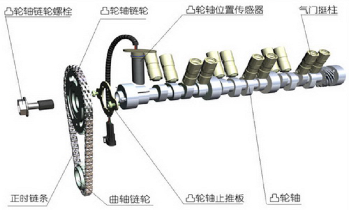 凸轮轴是活塞发动机里的一个部件。通过凸轮轴的不断旋转,推动气门顶杆上下运动,进而控制气门的开启与关闭。通过改变凸轮轴的曲线,可精确调整气门开启、关闭时间。